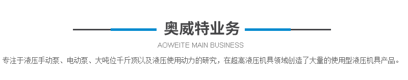 德州奧威特液壓機械有限公司有多年的超高壓元件及設備制造經(jīng)驗,依托德州精湛的制造工藝和不斷創(chuàng)新的技術,專注于液壓手動泵、電動泵、大噸位千斤頂及拆裝科技以及液壓使用動力的研究,在超高液壓機具領域不斷研發(fā),創(chuàng)造了大量的使用型液壓機具產(chǎn)品。